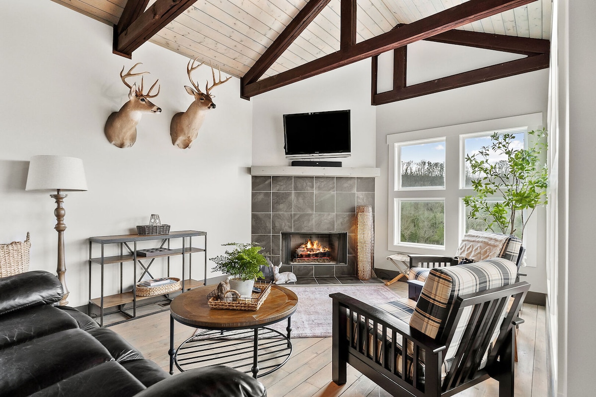 Valhalla is an amazing, rustically decorated, cozy chalet, in a gated community next to Center Hill Marina, and a short walk to a dock. We offer a firepit, propane grill, and lots of games and puzzles. Kitchen is fully equipped. A golf cart can be rented for $25/ day to get to the dock and back and visit the neighborhood park. Boat rentals are available next door at the marina. Unwind and unplug at Valhalla! Sleeping is king bed, queen bed, bunk bed with trundle, and a couch.