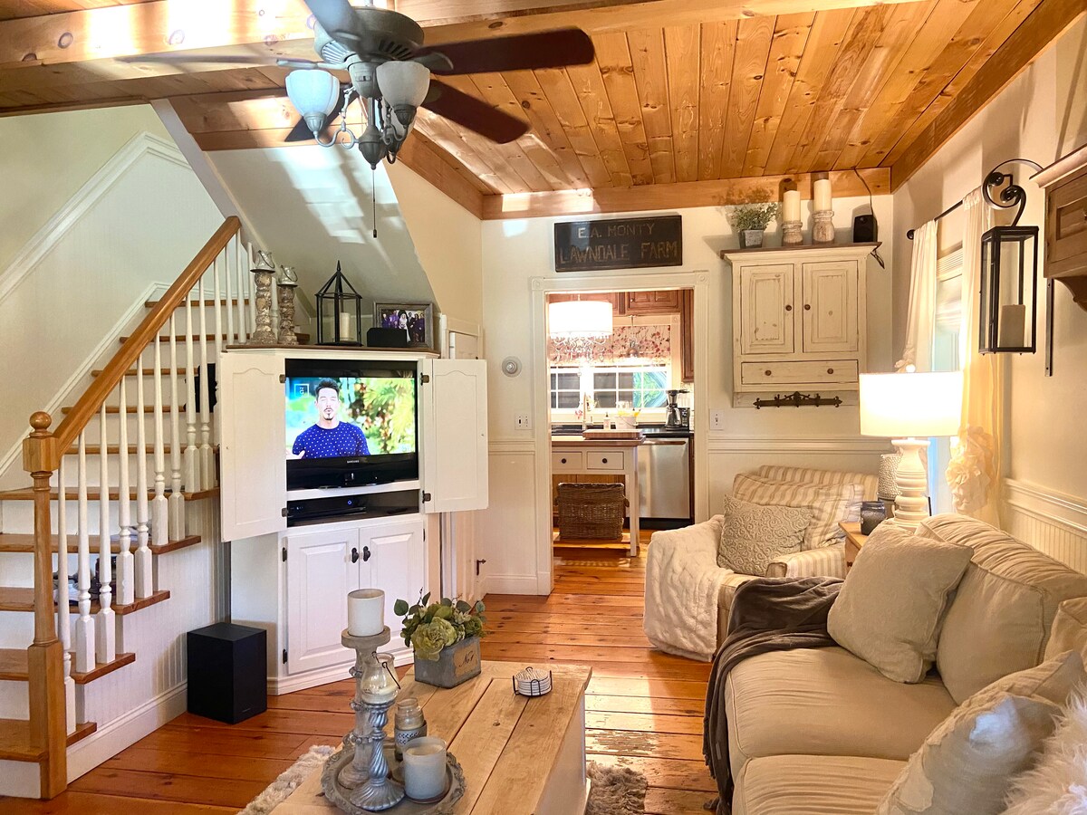 2 Private Acres | Walk to Town | Fireplace | WiFi.