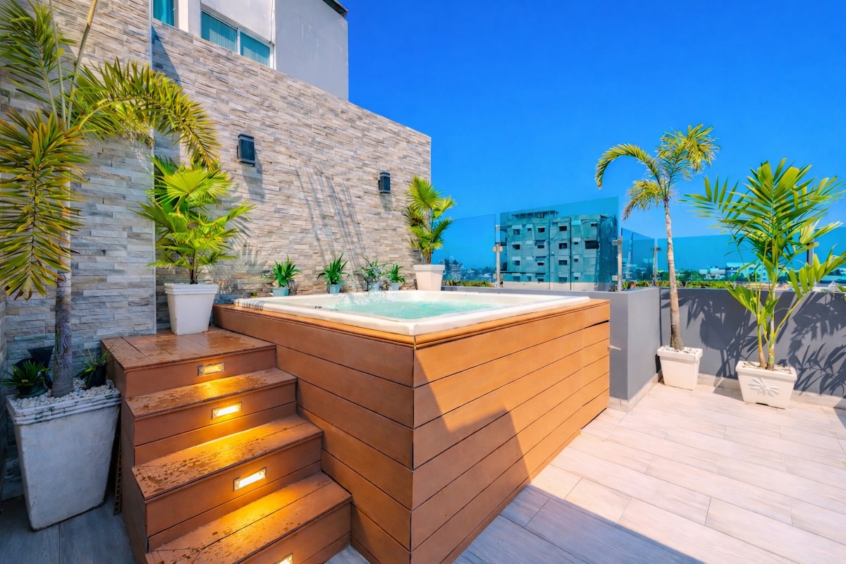 Penthouse with private jacuzzi and terrace, pool