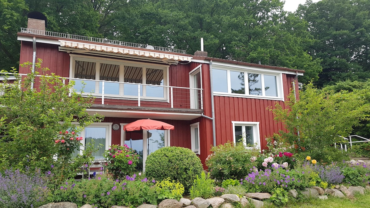 Light-flooded, Scandinavian-style vacation home The vacation home is very well maintained Carport is by the house. Bright and friendly kitchen, with seating by the window. Shower room with window. Open living space with large living area, Dining area with antique Swedish bench and folding table. Under the roof - bedroom with bunk beds, double bed and single bed with 24 cm high comfort mattress and small library with game collection. The vacation home has a closed terrace.