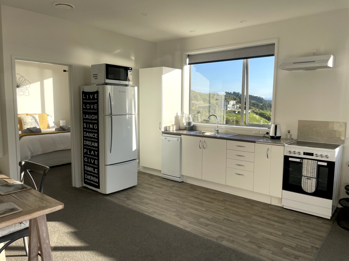 Enjoy your private guesthouse with views of the Tasman Sea and the Southern Alps. Ideal for couples or professionals, our unit has everything you need for your stay on the Coast. - Continental breakfast including cereal, toast, juice, coffee, tea etc. - Full kitchen - oven, microwave, fridge/freezer, dishwasher. - After a day of exploring, unwind with our smart TV and free Wi-Fi. - Free washing machine & dryer, laundry powder included. - Check in 2pm, check out 10am.