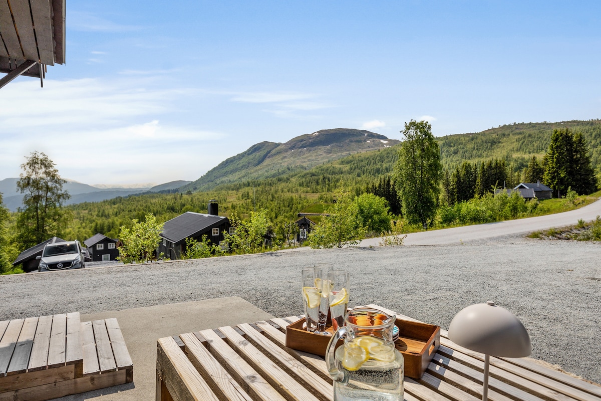 Located at the top of the Hodlekve cabin area, this cabin offers great sun exposure, mountain views and direct ski access. The 50 sqm cabin features high ceilings, creating a spacious and cosy atmosphere. The interior has dark tones and a cohesive, well-designed feel. A separate annex is available for rent on request. Washer/dryer, TV, Wi-Fi, kitchenware, firewood, made-up beds and towels are included. Ideal for winter ski stays as well as summer mountain trips.