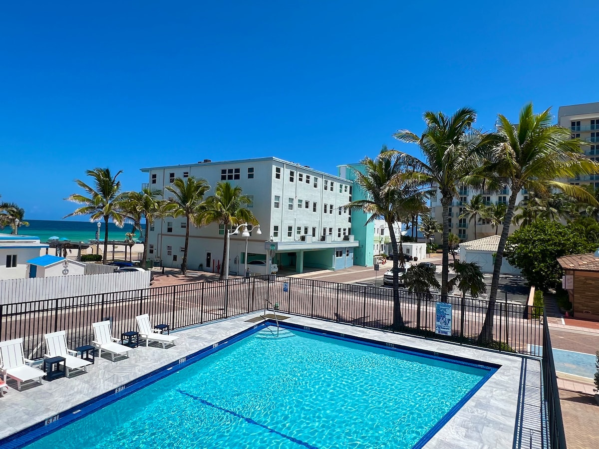 Welcome to our oceanfront condo located right on the Hollywood Boardwalk! Our spacious 2 bedroom, 2 bath condo is the perfect home base for your next beach vacation. Private entry, shared balcony where you can relax and enjoy the fresh ocean breeze and stunning views of the beach. The building includes a beachfront pool and one assigned parking space. Plus, with the Hollywood Boardwalk right at your doorstep, you'll have access to an array of restaurants, bars, and shops just steps away.