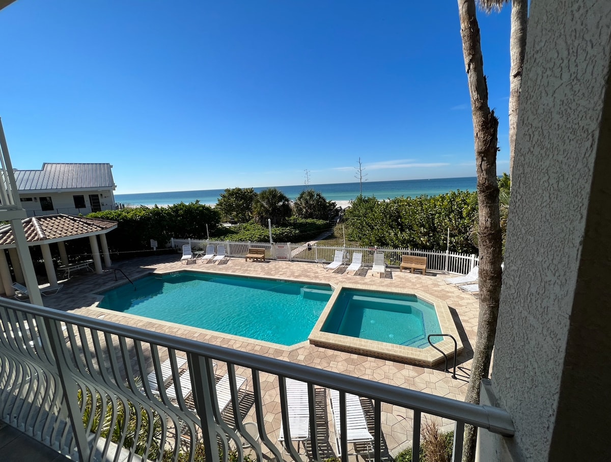 Looking for the perfect beach destination? This 2 bedroom/2 bath condo, recently updated, is centrally located on Holmes Beach and is only steps from sparkling gulf waters and white sandy beaches. New floors, new furnishings and decor - this place is your coastal getaway! Plenty of natural lighting large windows in the living room, a screened in cozy balcony to enjoy your morning coffee or an evening cocktail, and a fully-equipped kitchen with new backsplash and countertops overlooking the pool.