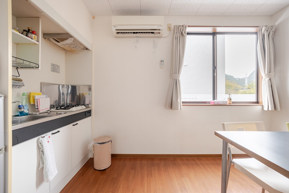 Perfect location. Walking distance to the the train and bus station, restaurants, shops, 24 hr convenience store and supermarkets. Second floor. quiet 3 room apartment (living and dining area, as well as 2 bedrooms) in central Shimoda with connecting balcony overlooking the river and park. Located near most major tourist attractions and only 1 km from one of Shimoda`s 5 stunning beaches. Limited number of bikes are available for free. For groups larger than 6, message us to rent entire house