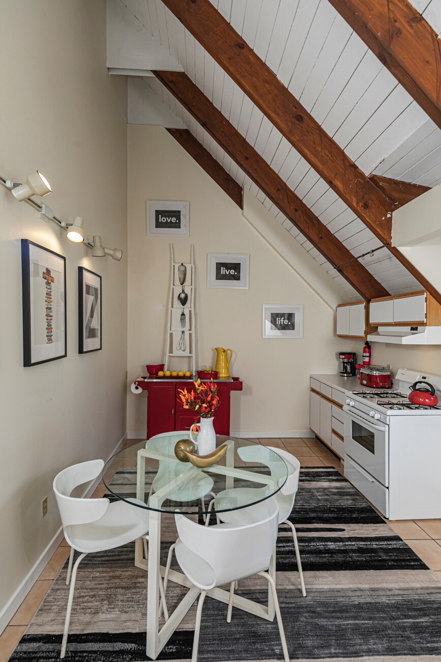 Nestled in the heart of Frenchtown NJ, you'll find enchantment hidden in the lush gardens of River Witch Cottage. • Restore yourself in a luxe queen bed • Prep a simple meal in the fully equipped kitchen • Nourish yourself in the charm of an intimate dining area • Recline in cozy comfort beside a beautiful gas fireplace • Rejuvenate in the jets of the jacuzzi tub, soaking under the natural glow of skylights • Morning coffee or evening wine in the tranquil setting of the private outdoor patio