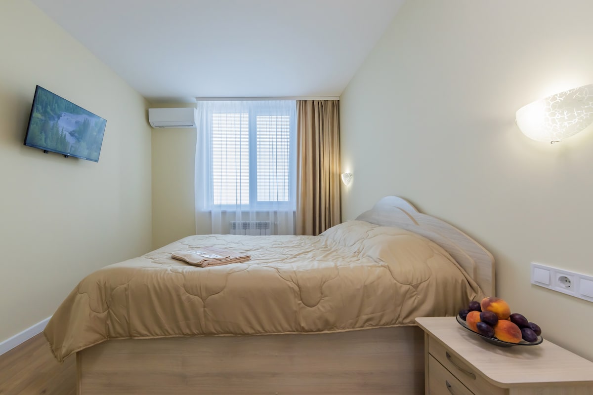 Very cozy studio apartment after renovation! The apartment is located on Sofiivska Borshchahivka in the residential complex "Happy". The territory of the complex is of a closed type under 24/7 security. Free parking is equipped with a video surveillance system. There is a large playground with a fountain in the yard. The apartment has everything you need: a large double bed, air conditioning, washing machine, TV, Wi-Fi, autonomous heating, iron, hairdryer, toiletries.