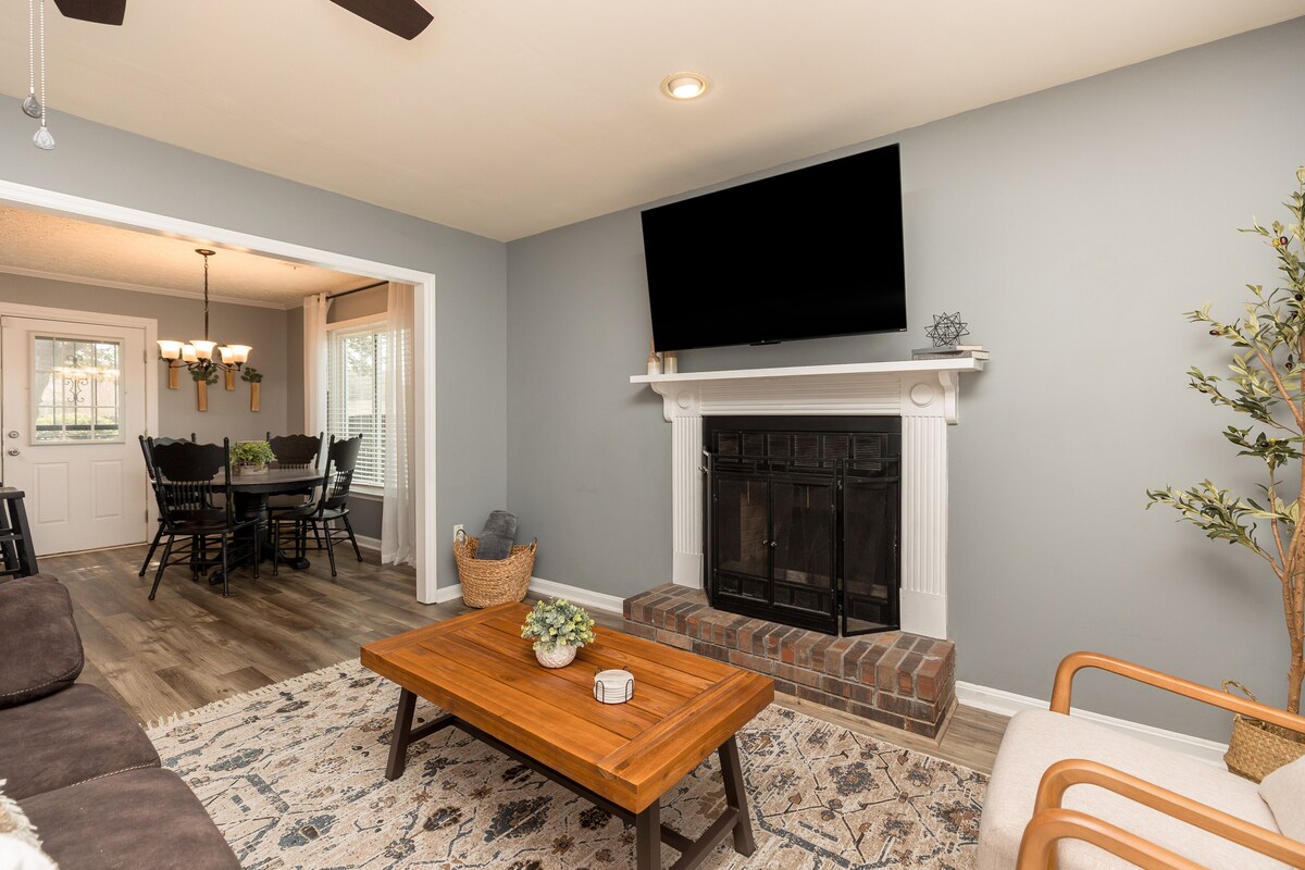 This spacious townhome is perfectly situated near the main strip of Warner Robins, with easy access to I75, stores/restaurants, Robins Air Force Base, and Houston Medical Center. Beautifully designed and suited to meet all your needs, you’ll have access to high speed internet, smart TVs w/ streaming access in each room, and a comfortable backyard perfect for pets, kids, or grilling. Book now for a comfortable stay at our "At Home +1" property.