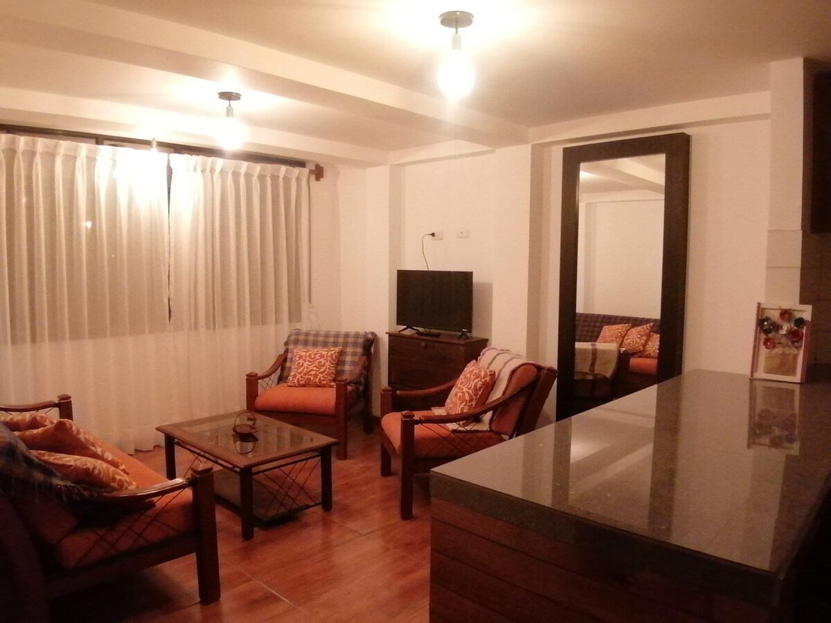 Spacious and comfortable apartment with a family and cozy atmosphere, it has everything you need to enjoy your stay, the area is very quiet and safe, with green spaces nearby where you can enjoy nature. Half a block away is the Huancayo Sports Center where you can continue with your exercise routine, we are very close to the Universidad Peruana Los Andes, a block from the Oncology clinic. We are 15 minutes from downtown. We look forward to seeing you!