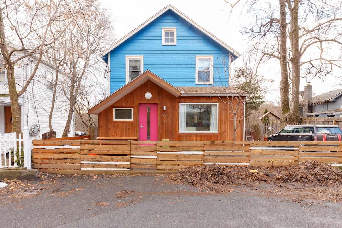 Recently featured in Vogue as one of “The Best Airbnbs in Upstate New York for a Weekend Away From the City” - A cozy getaway upstate on 2 acres of beautiful Catskill land. It's only 8 minutes to Woodstock, 5 minutes to the village of Saugerties, and there’s hiking, skiing and swimming within minutes. The entire second floor has been newly renovated including the bathroom and both bedrooms. The first floor is an open layout with kitchen, living and dining areas leading to the backyard deck.
