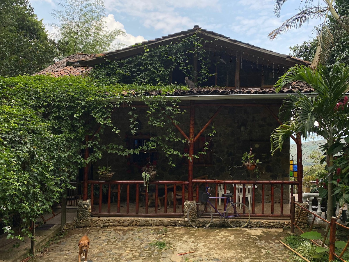 It is a beautiful place in the mountains, (it has 7,400 m2) in the vicinity of the Los Farallones de Cali National Park. We are surrounded by forest, with a beautiful view. We have sightings of howler monkeys, guatines, guaguas and various species of birds. We also have a botanical collection of fruit trees. We have the Jordan River 5 minutes away on foot, food service and hiking to various ponds where you can enjoy the beauty that nature offers.