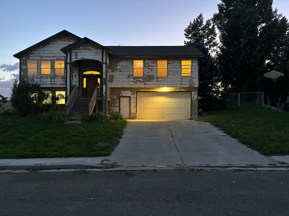 Welcome to your perfect family getaway in Elko, Nevada! Our spacious 3-bedroom, 2.5-bath home sleeps up to 6 and features two living areas, a fireplace, board games, & a coffee bar. Enjoy garage access, covered deck with patio dining, fire pit, and a BBQ grill. The kitchen is stocked with a variety of cooking utensils needed to prepare delicious meals. Located on a corner lot, near shopping centers, restaurants, & just off I-80, our home offers both comfort & convenience. Book your stay today!