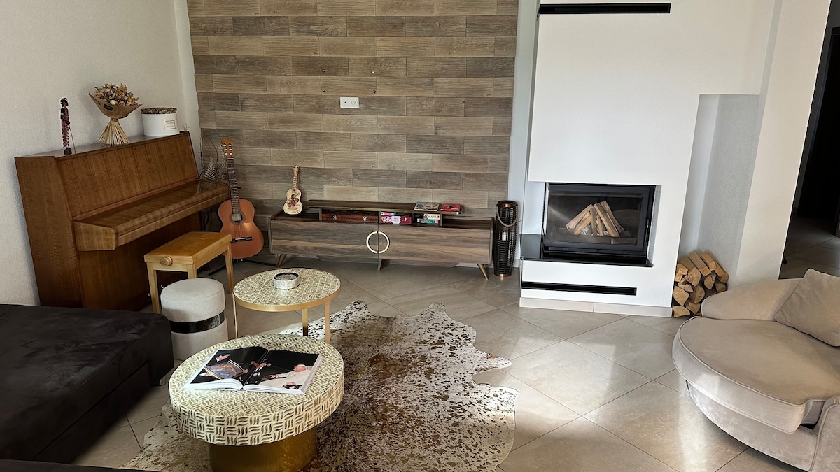 The house is located 6 km from the town of Humenné. The house has air conditioning Downstairs, there is a living room connected to the dining room, kitchen, bathroom with toilet and There are 4 rooms upstairs, but 3 rooms are available for visitors. -Bedroom number 1 has a double bed of 180 cm and one bed of 90 cm -Bedroom number 2 has 1 double bed 160 cm - Bedroom number 3 has 2 beds 90 cm one larger single bed (140x200cm) The outdoor seating is with the entrance directly from the kitchen. There is an outdoor grill and a large courtyard