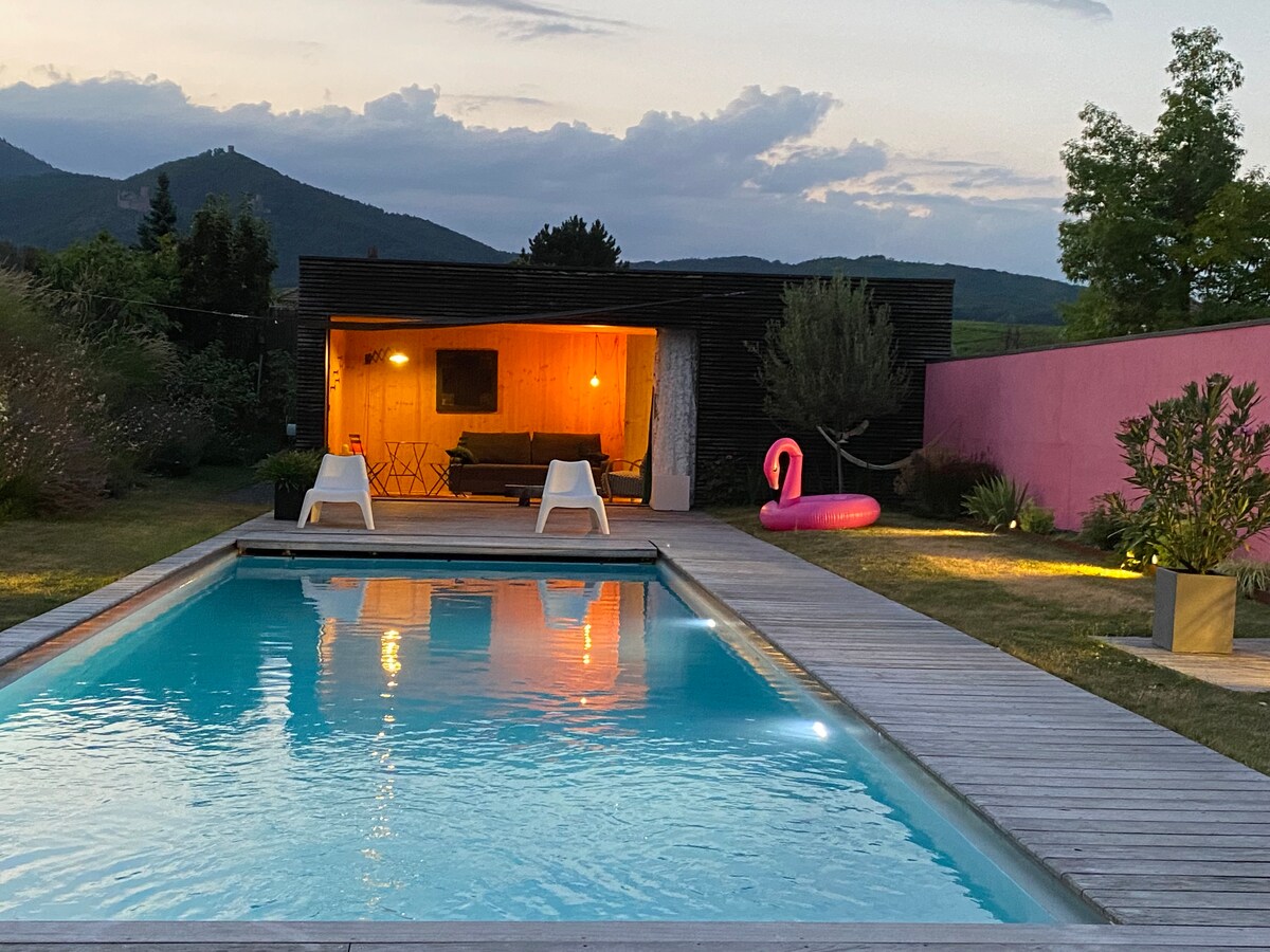 Beautiful 100 m2 cottage in Fréland, in a mountain village in the heart of Alsace, not far from Kaysersberg, Colmar, Riquewihr but also the ski slopes of Lac Blanc Ideally located for mountain activities, Christmas markets, and our wonderful vineyard. Breathtaking and unobstructed view, you can fully enjoy the heated pool accessible all year round, equipped with a fitness room and a sauna Reinforced cleaning carried out by a cleaning company