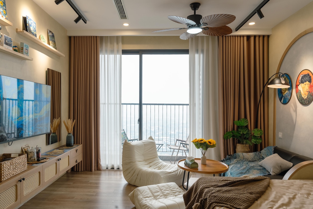 Welcome to the 36th floor apartment at Ecopark – a place for those who love beauty and unique aesthetics! Inspired by Van Gogh, the space here is not only impressive but also meticulously imprinted by the owner, from exquisite collectibles to every corner of artistic decor. The apartment is fully furnished with modern amenities: a nice kitchen, a soft bed, a soft sofa, and a high-rise view to chill out. If you like beauty and difference, this is definitely the place for you!