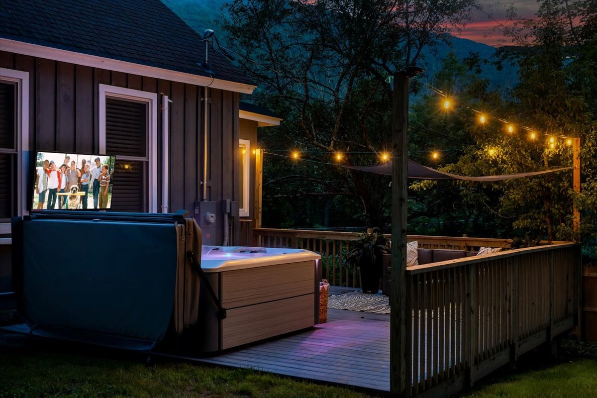 Experience luxury and comfort in our newly built property. Marvel at the breathtaking panoramic views of Rusk mountain through floor-to-ceiling windows. Unwind in the sauna or hot tub, and gather around the fire pit for cozy evenings. Enjoy outdoor movie nights with our projector, or savor grilled delights in the patio area. Warm up by the fireplace, explore Ski resorts, Golf Clubs and more. It's the perfect retreat for families and friends. Book now and create unforgettable memories!