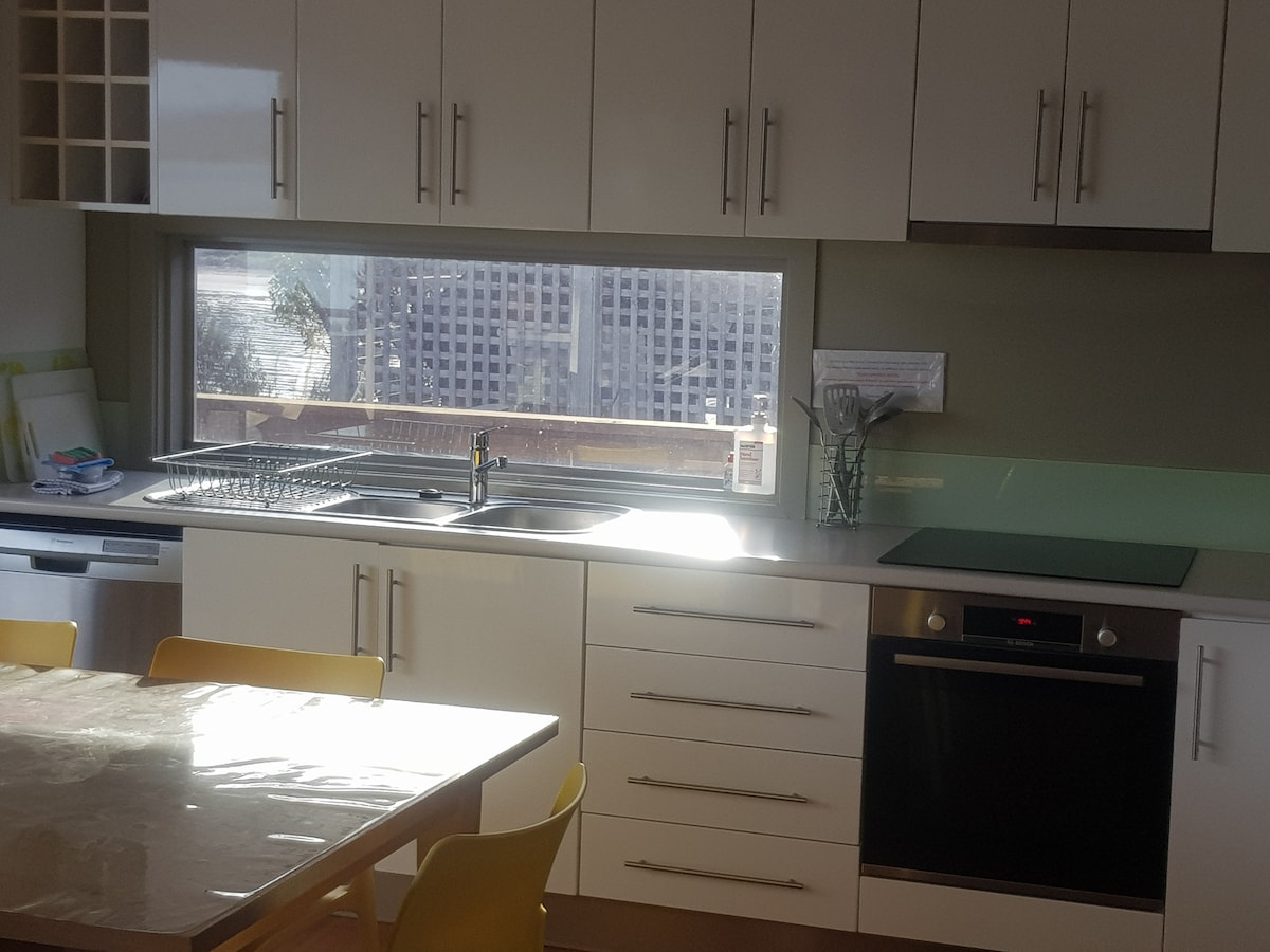 Contemporary 3 bedroom absolute waterfront "beach shack". Sliding doors open to an expansive and sunny deck. Lovely open plan living and dining area. Great kitchen. Coffee maker, locally roasted coffee beans. Enjoy a long lunch or dinner with friends and family around the stunning white sassafras kitchen table or out on the deck. Modern bathroom with shower. Fabulous for families or couples. Wood heater, Heat Pump Air con, BBQ, Private stairs to beach. Free WIFI and Netflix.