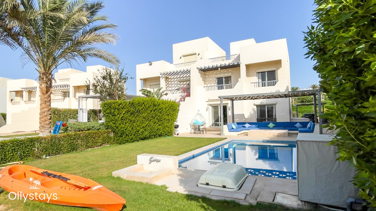 Three Bedroom Villa with a private heated pool and breathtaking views of the town and lagoon - Joubal Lagoon - offers privacy as well as a peaceful neighbourhood feel because of its wonderful location. You can effortlessly go to any preferred destination from your accommodation, which is only a short distance from Abu Tig Marina, the centre of Gouna.