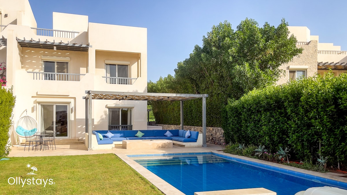 Three Bedroom Villa with a private heated pool and breathtaking views of the town and lagoon - Joubal Lagoon - offers privacy as well as a peaceful neighbourhood feel because of its wonderful location. You can effortlessly go to any preferred destination from your accommodation, which is only a short distance from Abu Tig Marina, the centre of Gouna.