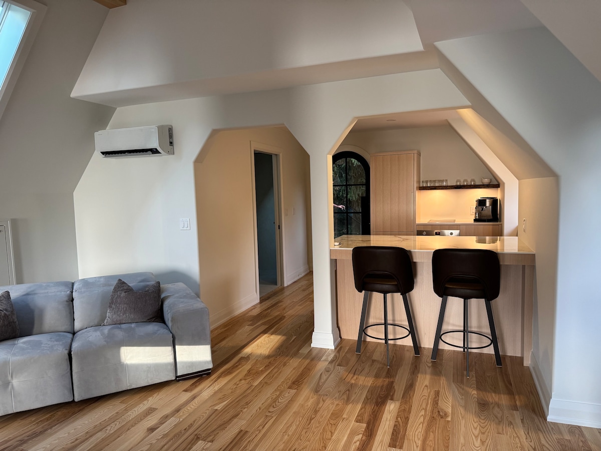 Bright and spacious 2BR apartment in downtown Seaforth with natural wood beams, barnboard walls, and a cozy gas fireplace. Light-filled with an open layout for relaxing or entertaining. Thoughtfully designed with warmth and comfort in mind. Located above a wellness space and just steps from shops and restaurants. A perfect home base for weddings, local events, or day trips to Bayfield and nearby wineries. A warm and peaceful space to relax and unwind.