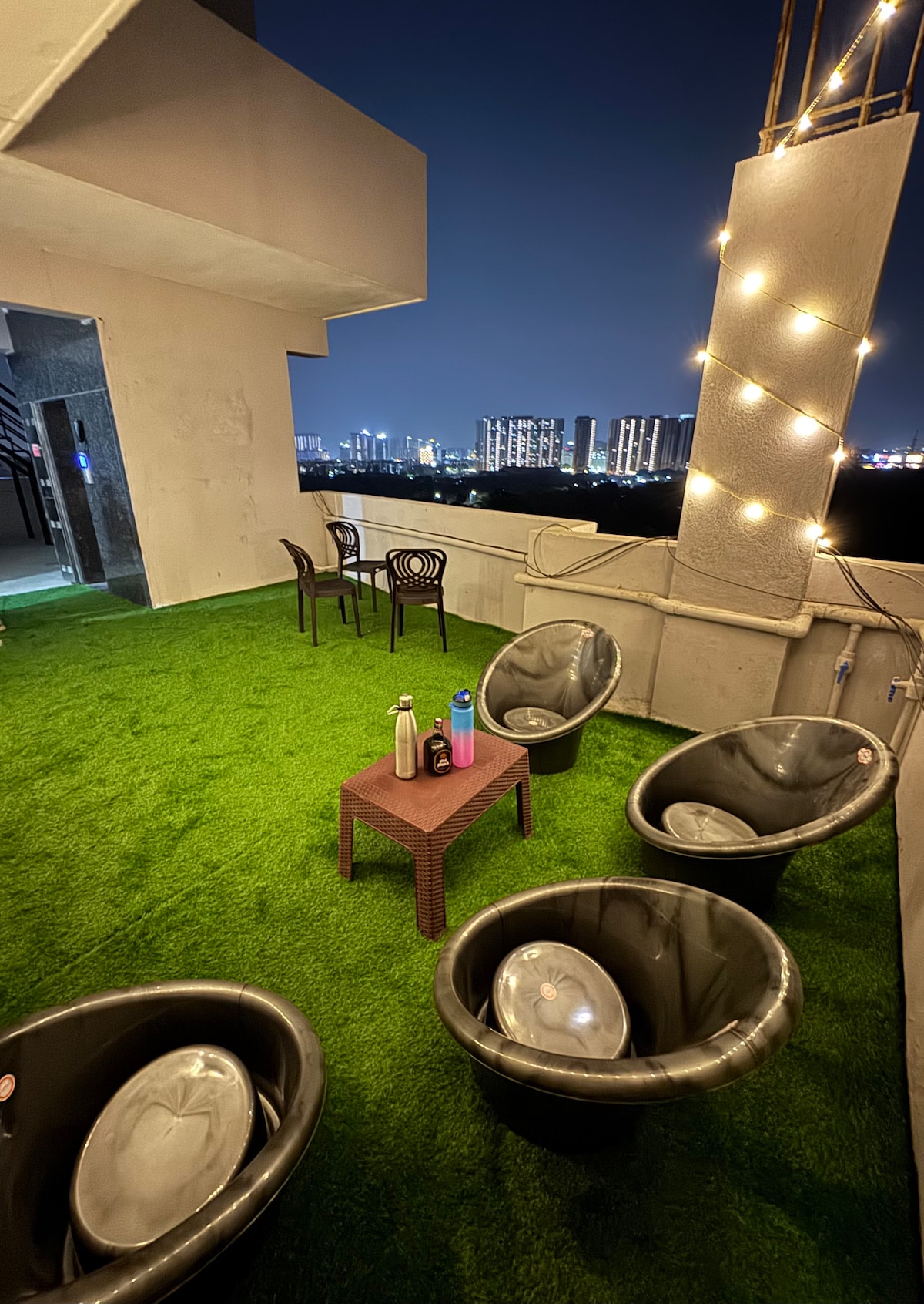 Our property is luxurious, secluded & only 5 mins from Hi-Tech City! This Duplex Apartment on the 4th & 5th Floors is perfect for: - Group of friends (upto 16 ppl), colleagues or families celebrating a special occasion in the Lawn - Corporate Teams needing Workstations, Fast Wi-Fi & power back-up - NRIs, tourists & wedding guests looking for a 2nd Home with MAID SERVICE, full kitchen and modern amenities - Couples who need a Staycation to relax in front of a 55" 4K-smartTV