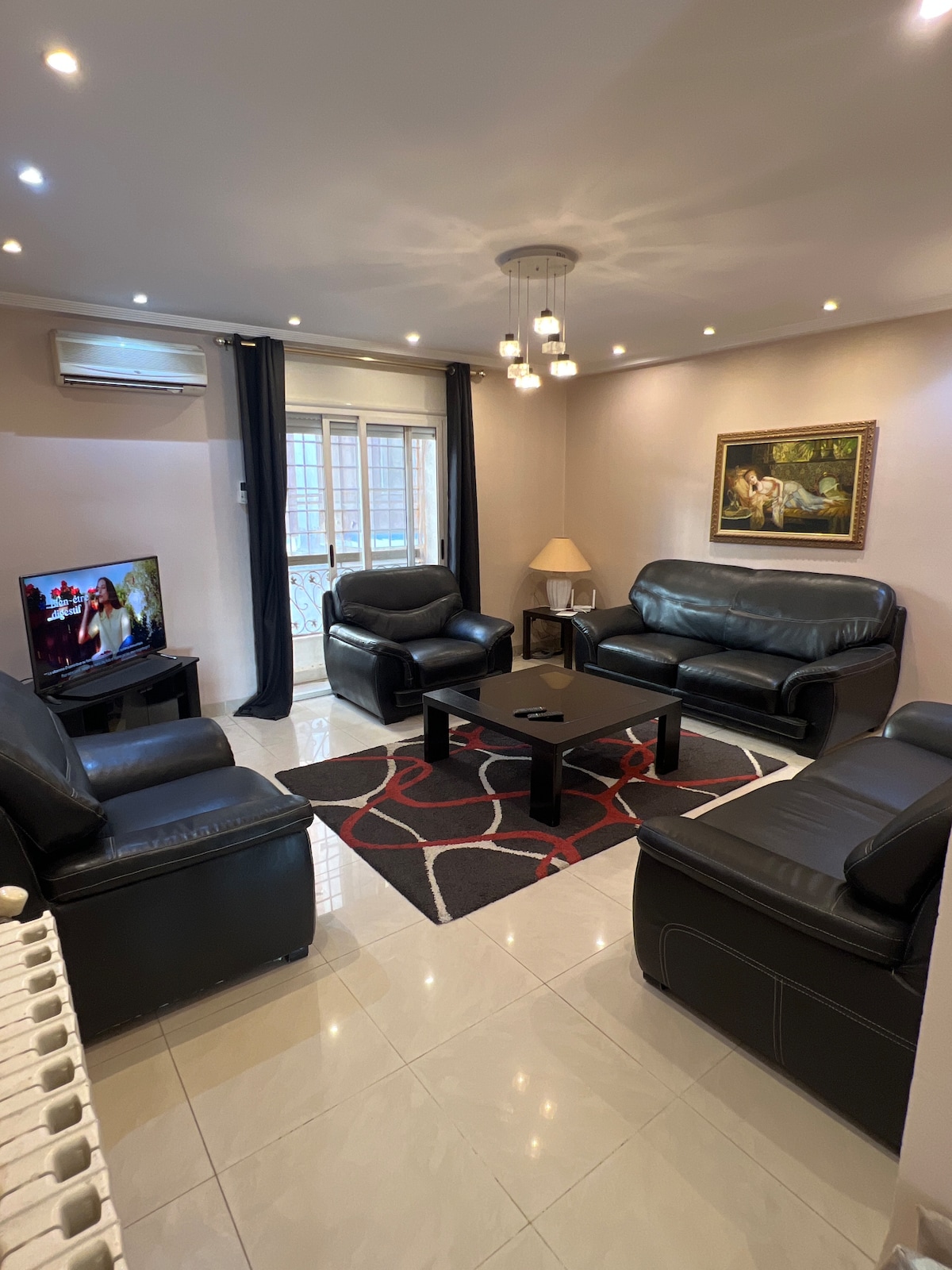 Profitez d’un appartement 3 pièces au deuxième étage,très bien équipé, offrant une ambiance douce, cosy et soignée, idéalement situé à Val Hydra dans un quartier calme et très sécurisé. À 2 minutes des meilleurs cafés et restaurants de la ville. Salon équipé Tv 43 , climatiseur LG et deux chambres (chambre parentale climatisée, tv et balcon + chambre de deux lits), cuisine et salle de bain moderne (machine à café, micro-ondes, lave-linge,ustensiles. Eau H24.Ambiance raffinée. Parking gratuit.