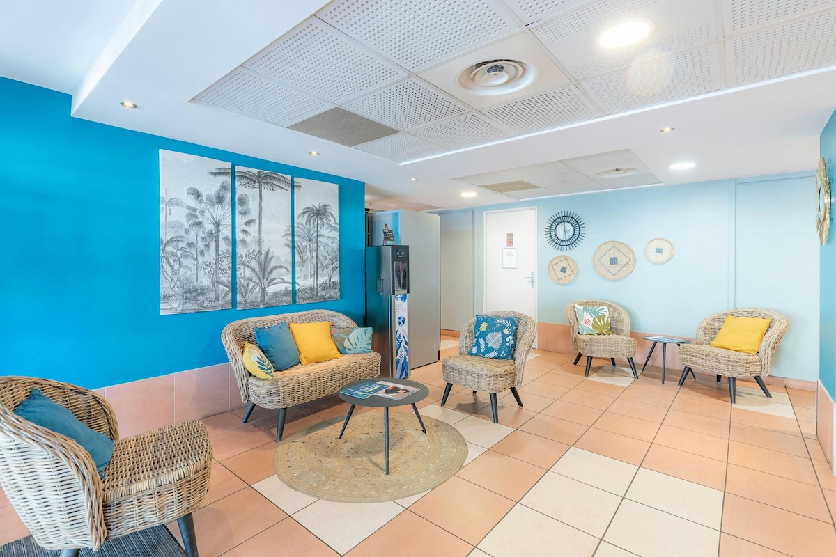 Zenitude Toulon Six Fours opens its doors with its 99 air-conditioned apartments, conveniently located just a 5-minute drive from the beaches. The 35 m² 1 bedroom apartment offers a comfortable living space with a sofa bed and LCD TV. The bedroom is equipped with a double bed with access to the balcony. Each apartment also has a bathroom and a fully equipped kitchenette. Bathroom: bathtub and toilet. Free Wi-Fi access.