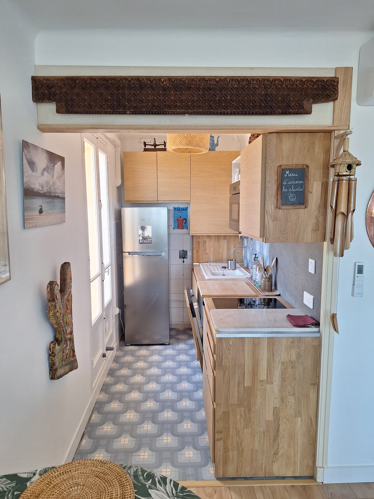 Hyères city center | 2 guests | 33 m² | Balcony 14 m² | 180° view | Secure residence An artist's nest in the heart of Hyères Discover this fully renovated studio, a real favorite where Parisian charm and Mediterranean light meet. Perched on the 5th floor of a 1950s architectural building, this peaceful retreat offers breathtaking 180° views of Hyères and its colorful rooftops - the perfect setting for a romantic vacation or a creative getaway.
