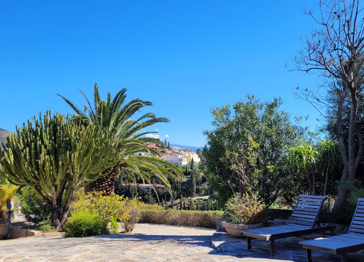 Unique 1 bedroom clocktower Casita on a beautiful Finca only minutes away from the beach. The stylish casita has a double bedroom and a living/dining room with a sofa bed. There's a huge terrace with wonderful views of the surrounding countryside and even a glimpse of the sea. The location is very peaceful and yet it's only a 20 minute walk (uphill on the way back) or less than 5 minute drive to the beach and town- Dine on the terrace and relax in the hammock or on the sun loungers