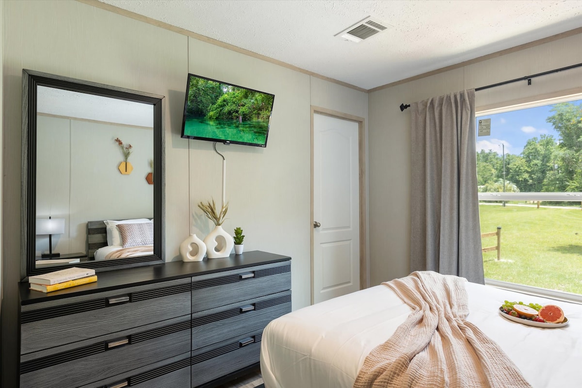 Beautiful serene 2026 remodeled home one mile from Ichetucknee State Park! Also close to Ginnie, Blue, Poe, Royal, and Little River Springs. Step outside with your coffee and enjoy the wooded neighborhood and river views. Large screened porch and well appointed open kitchen perfect for cooking. The house is elevated which creates a separate covered outdoor area with hammocks and a full second bathroom. Perfect cozy space for a couples retreat! Treehouse as an add on for extra guests.