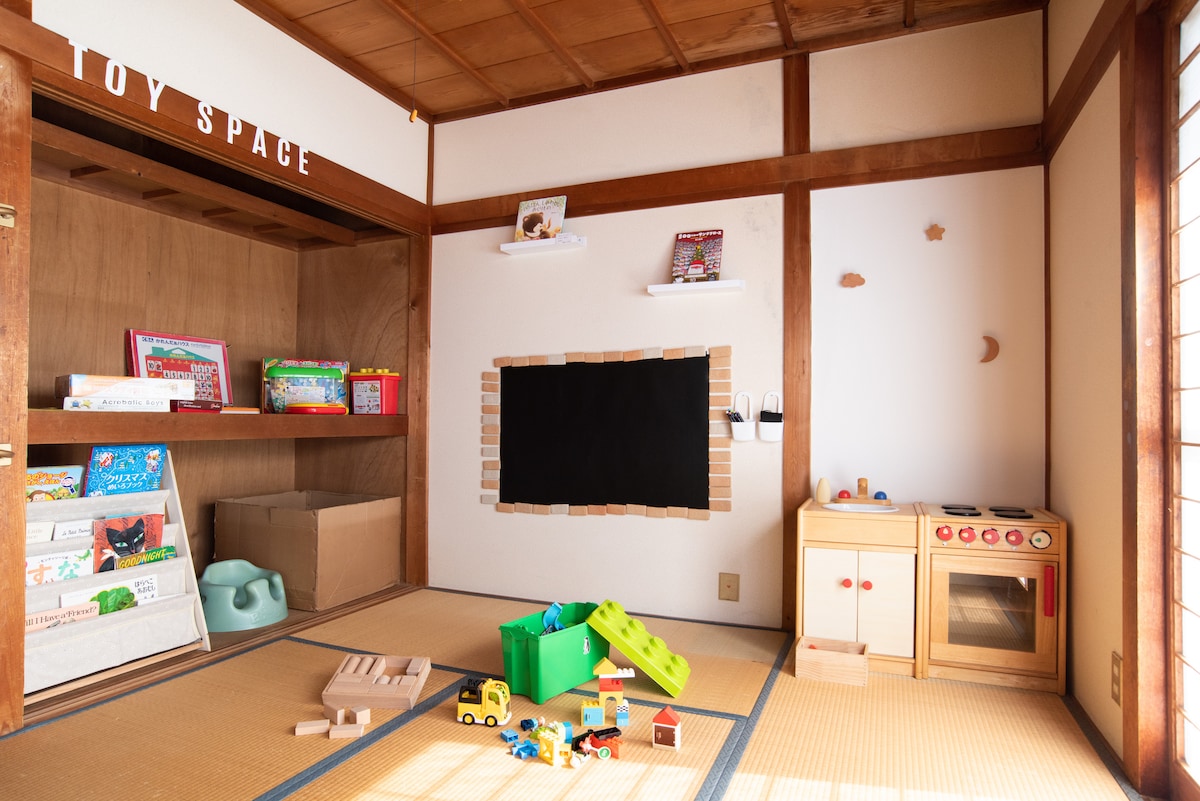 * Limited to one group per day, entire building rental, 5 people * * Long-term accommodation discount available * * Last-minute discount available * Children grow up in the blink of an eye. What is now common "family time" is actually an irreplaceable and valuable part of daily life. If you're on a family vacation, why not make the most of your time with your children until bedtime? Make the time you spend with your family a lasting memory until the moment you fall asleep. EHON HOUSE is "I want you to spend time with your family through picture books" "I want you to enjoy your stay without hesitation even if you are with children" This is a family-friendly accommodation with that wish in mind. There is no TV in the accommodation. Instead, we have devised ways for families to spend a relaxing evening with picture books, board games, and more. Futons to make it easy to sleep with your child The bedroom also serves as a playroom with cork mats A board on the wall for drawing Lots of picture books Board games and toys Children's dishes and unbreakable dishes · Children's chairs We also provide.