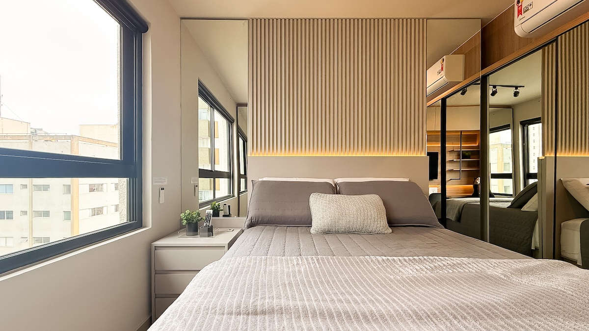 Duplex moderno e finamente decorado com ar condicionado, em condomínio clube com portaria 24horas. Acomoda duas pessoas (não é permitido convidados) possui 1 suíte, sala com TV QLED, lavabo, cozinha (churrasqueira indisponível) e garagem. Os utensílios/eletros deverão ser deixados como encontrados - LIMPOS. Disponibilizado Wi-Fi (uso residencial). Muito bem localizado, próximo a mercados, farmácias, padarias, Hard Rock e shopping.