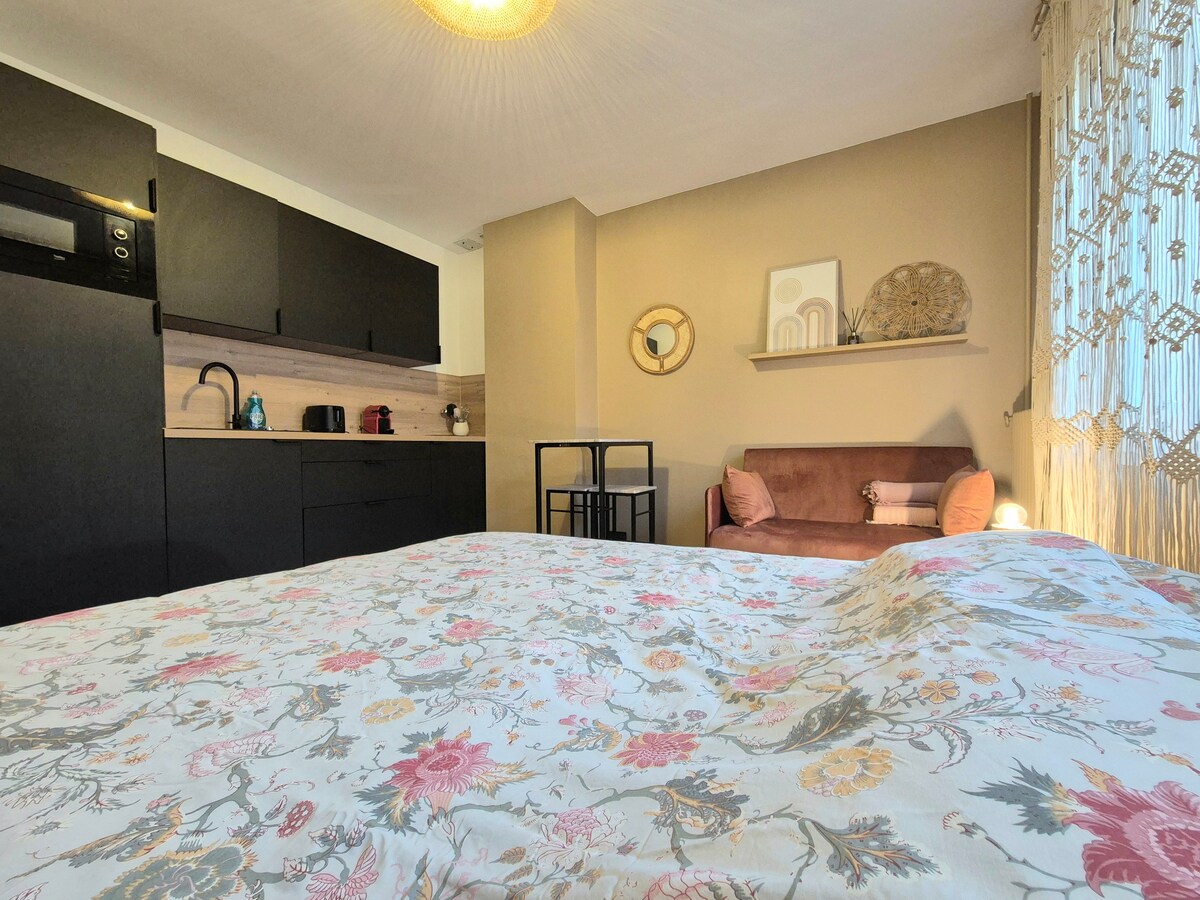 Welcome to this well-appointed 14 m2 studio, located in the heart of Rouen and close to all amenities. You can walk there from the train station in 12 minutes, by metro by getting off at the "Boulingrin" stop or by car with free parking 500 meters away. The location allows you to discover the many pedestrian streets, monuments, shops and restaurants. Park, supermarket and bakery in close proximity to the studio. Please note that it is located on the ground floor on a one-way street.