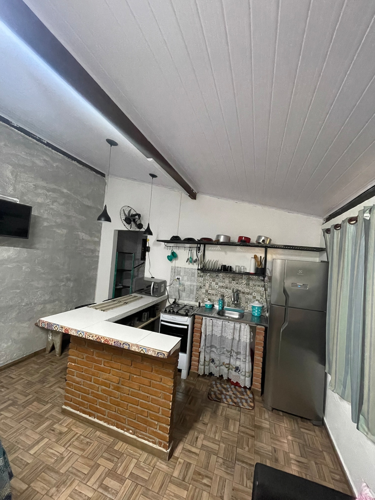Cozy and well-located studio with air conditioning, cooktop and electric oven, refrigerator and microwave. We are a practical couple passionate about travel, but at the same time we value our space in nature. The house decor is a reflection of our previous destinations and our other love: cooking. Ideal for couples or friends looking for a comfortable and more affordable stay.