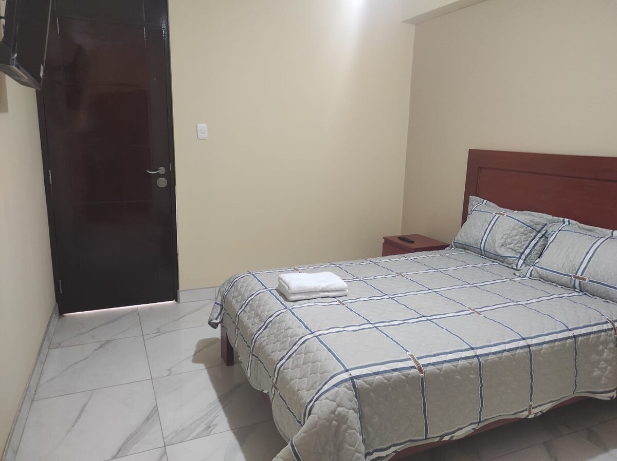 Depa privado en Lambayeque con WiFi. 1 dormitorio con baño privado, sala con TV, comedor y cocina equipada. Cómodo, iluminado y tranquilo. Ideal para parejas o viaje de trabajo.