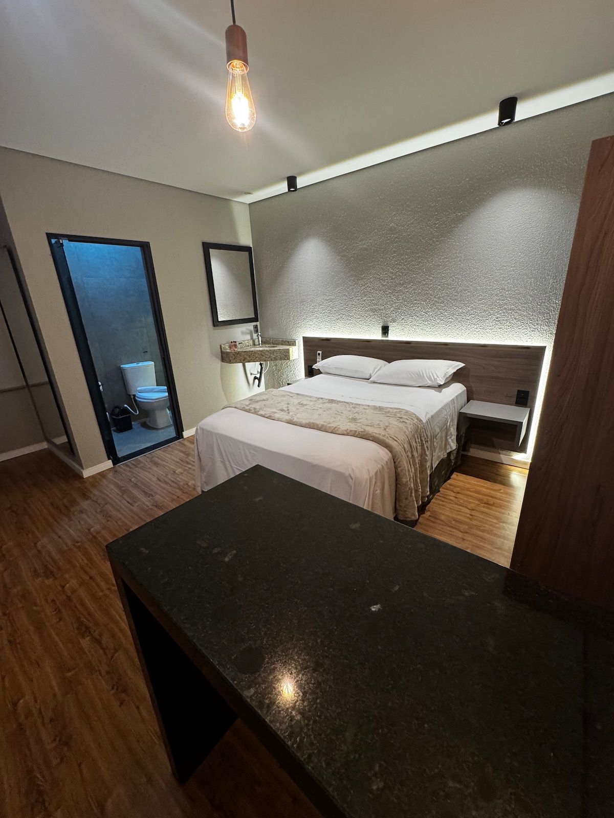 Kitnet mobiliada Garagem para moto Nao possui televisão e maquina de lavar 1 quarto, 1 banheiro, 1 cozinha e sacada. 1 cama de casal mas podemos colocar mais 1 colchão de casal e 1 de solteiro