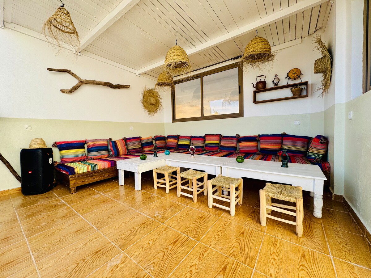 Room and terrace on the Atlas 3 km from Taghazout The room has an outdoor fireplace, a shaded garden. Homemade meals by your Berber hosts (optional). You will be the only tenants of the riad during your stay. A kitchen and an indoor bathroom? Book on our listing Le Riad Berbère. Top of Taghazout, same location and same price for 2 - airbnb.fr/h/riadatlas