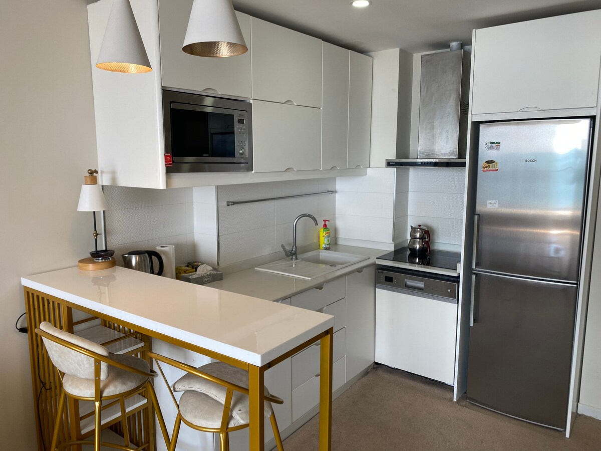 Luxury suite residence. Full sea view Our customers can easily use the hotel facilities. Pool, gym, sauna are extra charge. The apartment has a separate parking lot and it is free The place is directly on the beach and has a uniquely beautiful sea view. This apartment has an extraordinary sea view where you can enjoy the sunset from your couch and bedroom The metro station is across the street and there is a taxi stand next to the residence.