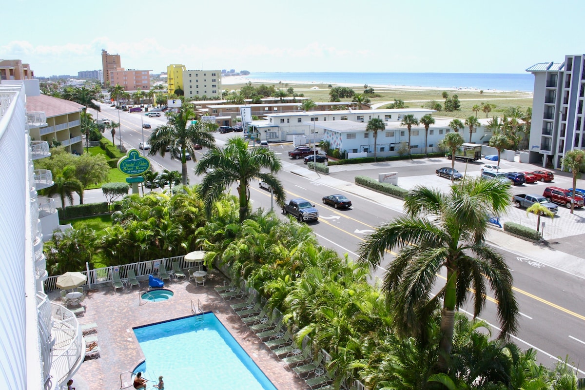 Tropic Terrace Suite #15 — Relaxing Poolside Studio in Treasure Island 🌴 Suite #15 at Tropic Terrace Resort is a welcoming, pool-facing studio that blends tropical charm with unbeatable location. Ideal for couples or solo travelers, this cozy unit offers a peaceful retreat just steps from the resort’s lush courtyard and heated beachfront pool.