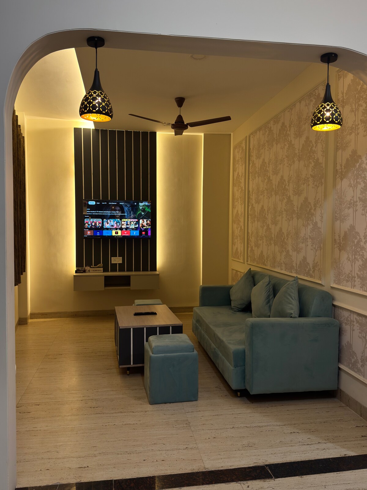 Relax with the whole family at this peaceful place to stay. A cozy, thoughtfully designed space that blends comfort with style ✨ Soft lighting, calming colors, and neat interiors create a relaxing vibe the moment you walk in. Perfect for parties 🎉, family time , working peacefully, or unwinding. Homely yet modern, photo-worthy corners 📸, welcoming feel, and all under budget 💸 — comfort without compromise!