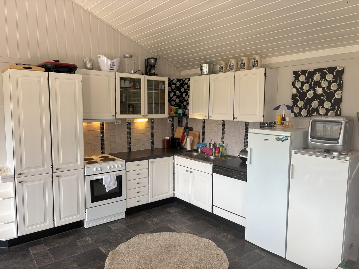 Welcome to our luxurious lake cabin with 3 bedrooms, 2 bathrooms and a spacious terrace of 161 sqm. Enjoy panoramic views and walking distance to idyllic Råkvåg. Carport, parking, and internet included. The cabin is 50 meters from the harbor, perfect for relaxing days by the sea.