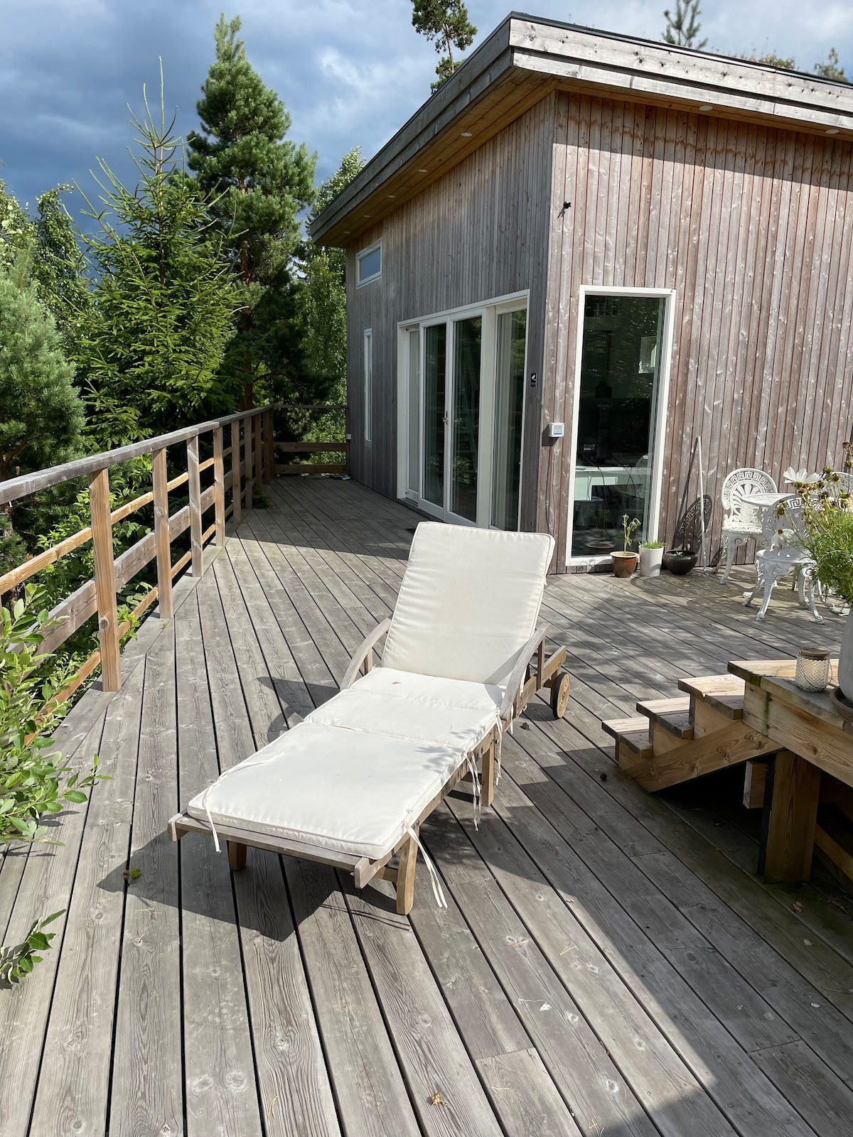 Charming 130-year-old cottage (90 m²) with a modern yet cosy feel. Two renowned spas (Yasuragi & Skepparholmen) within walking distance. Bottom floor: kitchen and dining area with classic wood stove, living room and bathroom. Your own garden and spacious wooden deck—perfect for sunbathing or BBQs. Set in a beautiful area with a crystal-clear lake for bathing just 200 m away, with a nature reserve surrounding it. Sea dock ~700 m. 30 minutes to Stockholm by Waxholm boat, bus or car.
