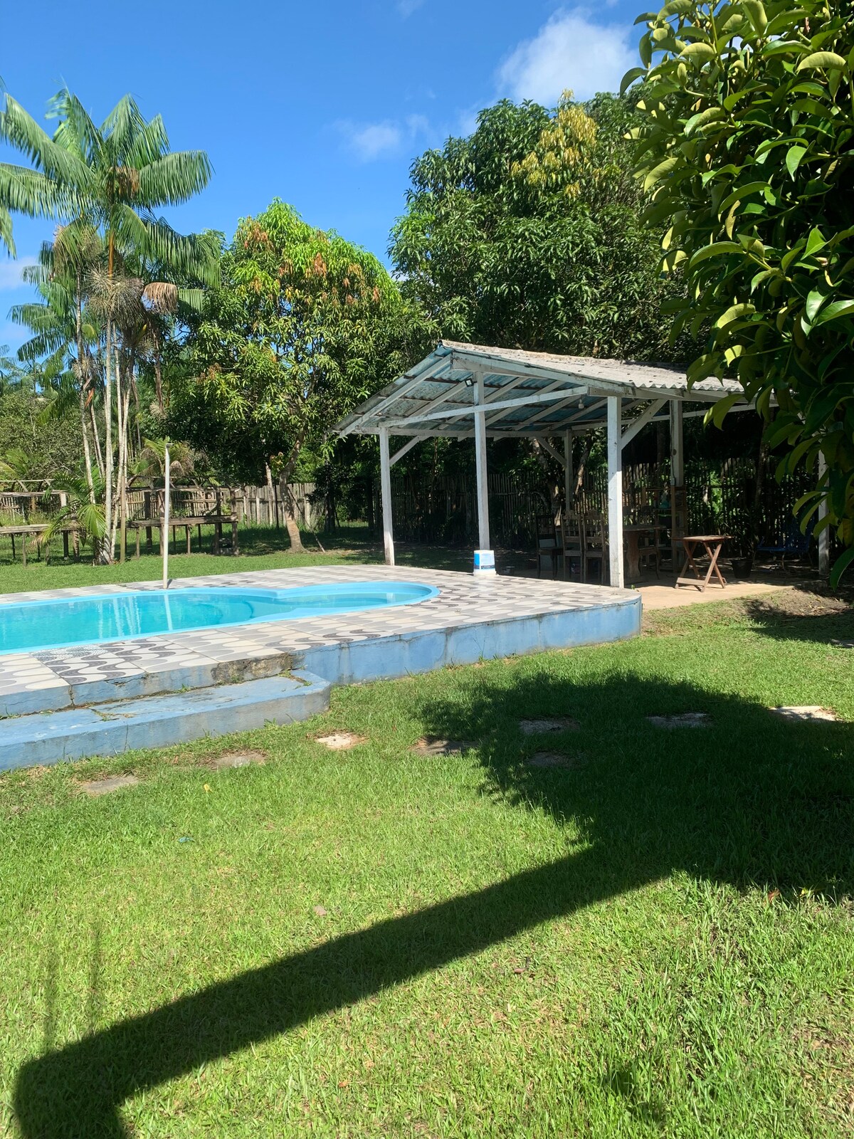 O Sítio Bonanza, em Benfica, é um refúgio rodeado por áreas verdes e açaizais. Aproximadamente 30 km do Aeroporto de Belém, com acesso totalmente asfaltado, é o lugar ideal para descansar, reunir família e aproveitar a natureza com conforto. No imóvel: * Varanda ampla * Sala de estar com TV * Copa-cozinha espaçosa e equipada * 3 quartos (1 suíte) * 2 Banheiros sociais * 1 Lavabo * Piscina privativa * Área de churrasco * Redário * Jardim e quintal espaçoso Natureza e conforto para sua família