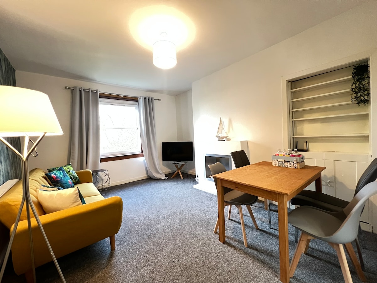 Our large fully renovated apartment is suitable for couples, friends, small families or professionals with 2 bedrooms a large, bright, open plan living room has dining kitchen for 4. For those who like to cook the kitchen is well equipped all the cooking utensils & crockery you'll need! With ample food storage in a large fridge & freezer & don't forget the coffee pot for those sluggish mornings! Steps away from a variety of shops with friendly cafes, restaurants, boutiques and a cosy local pub.