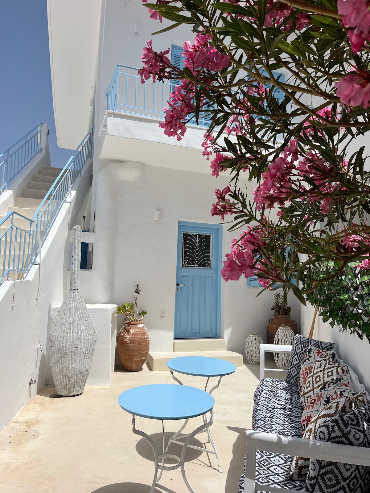 Notre luxueuse maison de style cycladique vous accueillera pour vos vacances sur l'île de Ios, à 400m de la superbe plage de Yalos. Située légèrement en hauteur, vous bénéficierez d'une vue panoramique sur Kampos (la campagne), Chora (le village), le port et enfin la plage. Tout cela dans une quiétude absolue, loin de la vie animée du village, mais à proximité de toutes commodités. Malheureusement, nous n'acceptons pas les groupes d'étudiants.