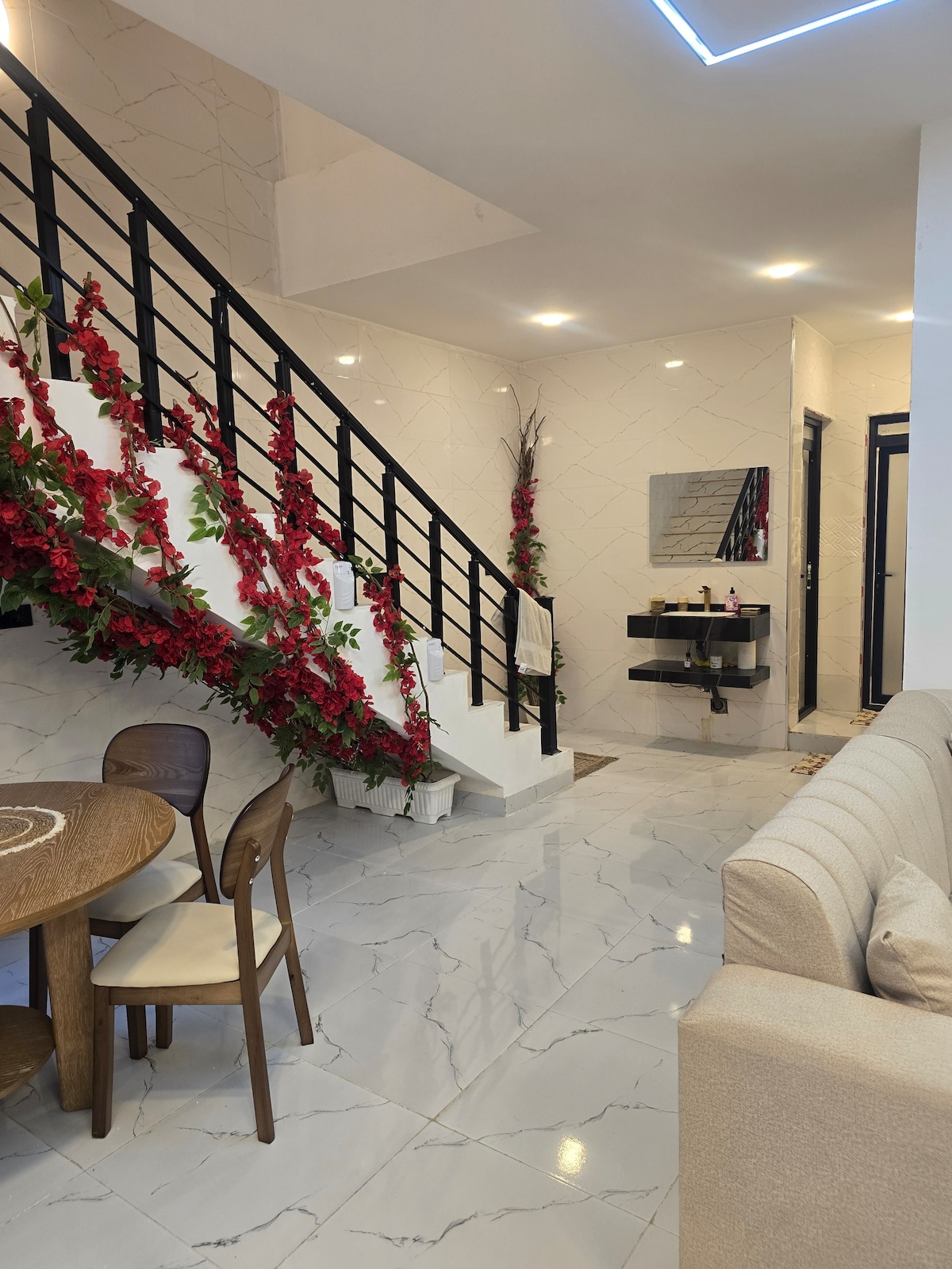 Enjoy the quietness and the sounds of nature in the middle of the city. يتميز المنزل بموقعه الممتاز في ارقى احياء بغداد ، المنصور شارع الاميرات ، ويقع جنب السفاره الرومانية مباشرة ، وهذا يعطيك ميزه الامان المستمر على مدار اليوم ، وكذلك الخدمات والتنظيف والكهرباء والانترنت متوفرة على مدار اليوم... المنزل جديد جدا والحي هادئ ، وموقعه في وسط المنصور ، قرب مول المنصور ومول الحارثيه وجنبه الكثير من المطاعم والمقاهي. من المؤكد أنك ستحب الحديقة بطيورها الجميلة والأرنب اللطيف الذي يقفز حولك... جميل جدًا
