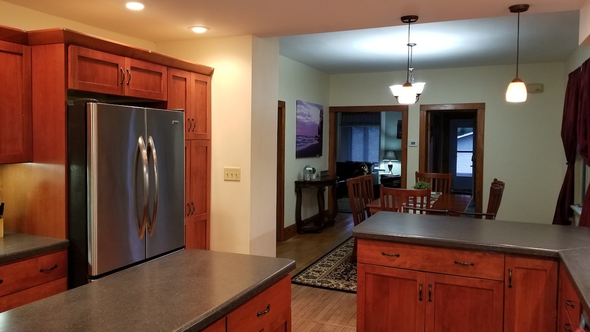 Completely remodeled from head to toe! Located within half mile of trail system, 2 miles from historic downtown shops, on the outskirt of town (Ironwood Township=great drinking water) minutes from Big Powderhorn Mountain & Copper Peak, walking distance to Gogebic College & Mount Zion, 17 miles from Lake Superior, large private wooded yard with fire pit in summer, private parking, 1 stall garage if needed in winter. A light Bakery breakfast included with your stay!