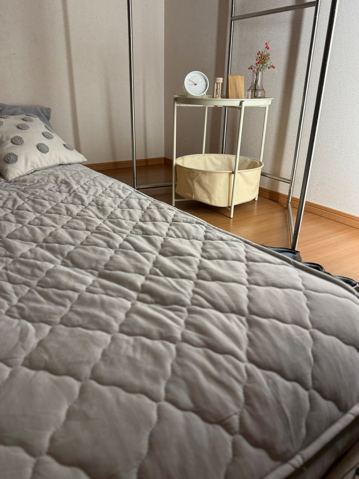 Relax in a quiet, stylish 1K apartment—all yours! Great access: 4 min to Tokorozawa, 30 min to Ikebukuro, 40 min direct to Seibu Shinjuku. Located 15 mins on foot from Shin-Tokorozawa Station, or 6 mins by taxi (~700 yen). Coin parking nearby. Enjoy the entire 23m² space—ideal for up to 3 guests. Perfect for couples, friends, or small families seeking privacy and comfort. Includes 1 queen bed (160x200 cm, Serta) and 1 sofa bed (80x180 cm). Free, fast Wi-Fi available for the apartment.