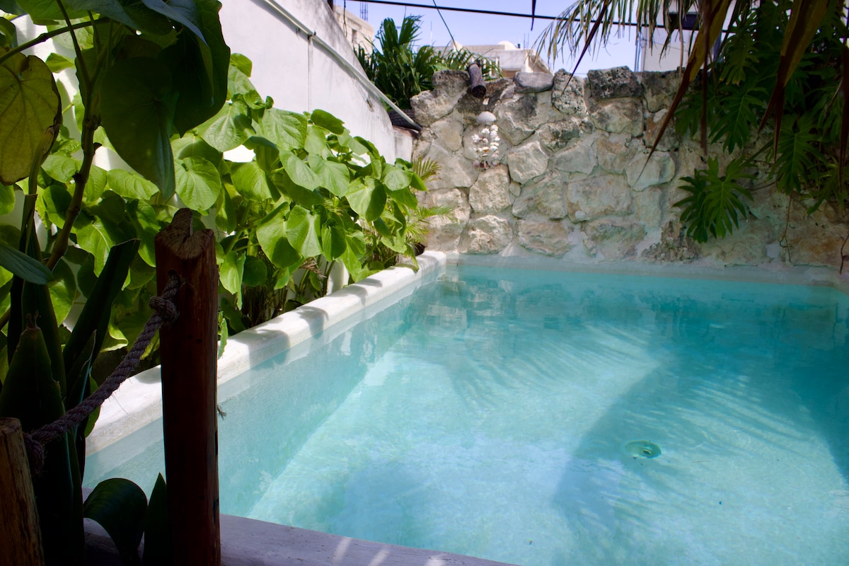 Beautiful luxury house with Mayan and hardwood style. A authentic Prehispanic experience. The suite has a equipped kitchen , bathroom, bedroom with smart TV ,and closet, private terrace and garden and a large shared pool chlorine free. Hermosa suite de lujo con acabados en maderas preciosas y estilo Maya. Una autentica experiencia mexicanca estilo prehispanico. Cuenta con cocina equipada,baño completo,recamara con Smart TV y closet,terraza y jardin privados y gran alberca sin cloro , compartida