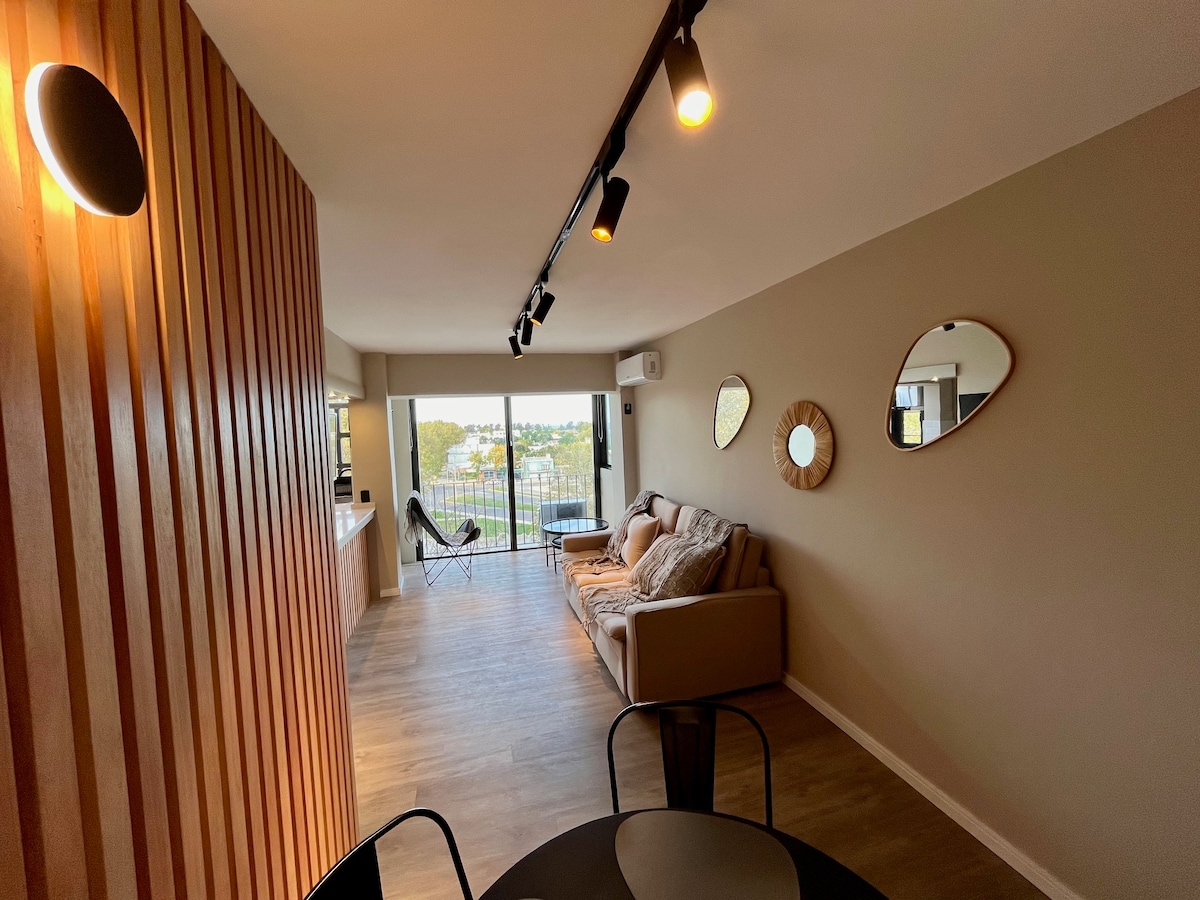Dos Orillas Boutique Calm Space 305 Studio apartment in a premium building on the Rambla with amenities, gym, in/out pool, massage service, sauna, Jacuzzi, king-size bed with the possibility of separating, sofa bed, split cold/heat, full bathroom, balcony, microwave, river views